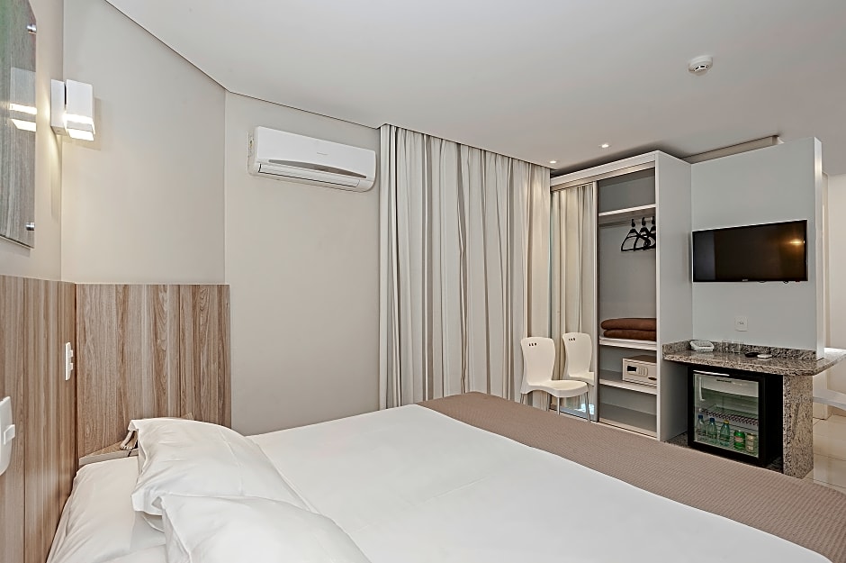 Standard is 431 square feet and includes a queen-size bed 150-154 width plus a sofa bed plus balcony, cable tv, hairdryer, and safe and is Wheelchair-accessible.